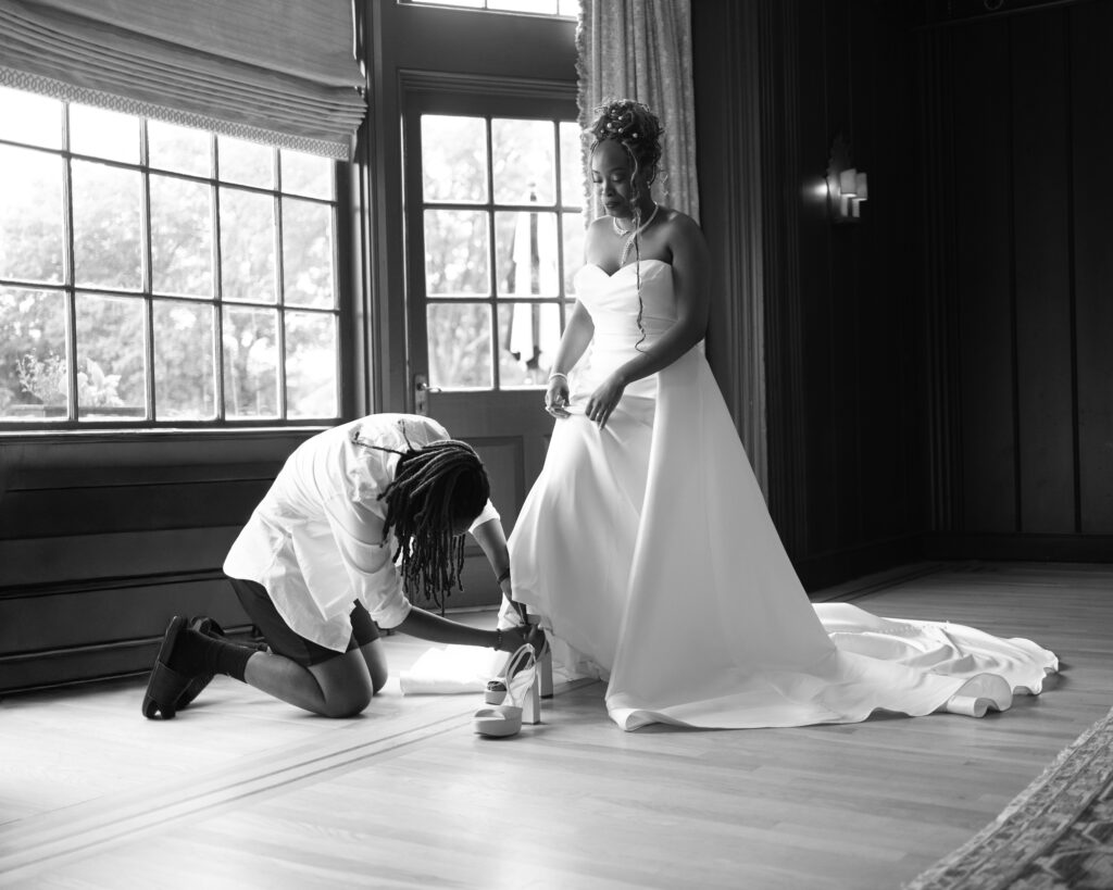 The wedding day itself couldn’t have been better. It was one of those nice days that just feels made for a wedding. The decor was elegantly simple. Warm enough to create a loving and inviting space. It fit them perfectly. One of the standout parts of the day for me was working with Asia’s person of honor, Moriah. Moriah is also a photographer and they was one of the best person of honors I’ve ever worked with. From the moment I arrived, Moriah was on it. They made sure everything was running smoothly, had answers for every question, and solutions for every little hiccup. Most importantly, they handled all the details so that Asia could truly focus on her big day. I can’t even explain how much that changes the vibe of a wedding. It allowed Asia to just be present and enjoy getting ready without stress.